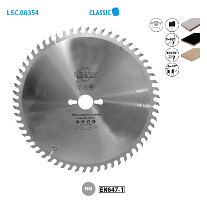 La lame Leman 354 est parfaite pour la découpe des panneaux plaqués thermoplastiques, duro-plastiques polyester, MDF, HDF, mélaminé, stratifié ainsi... En savoir plus